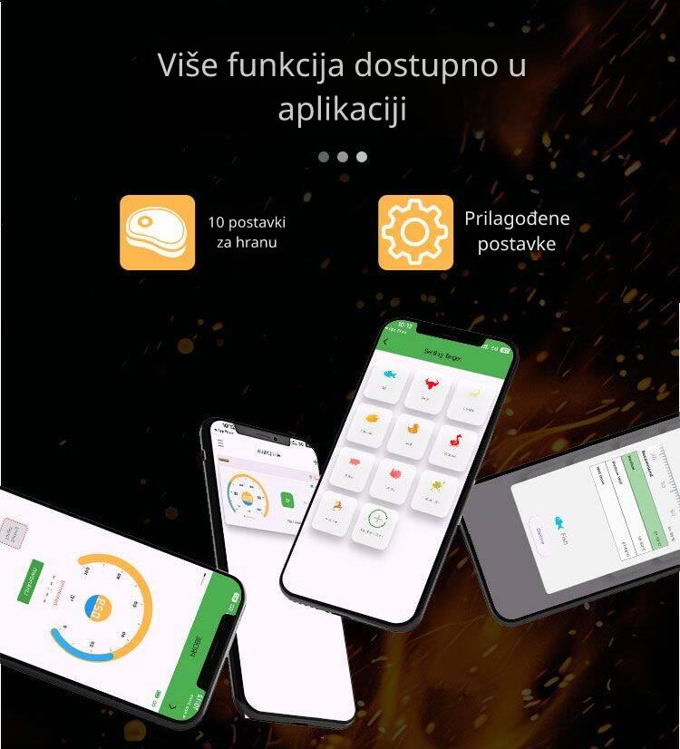 - Pametna kontrola: Bluetooth 5.2 veza s aplikacijom AiBBQ Life