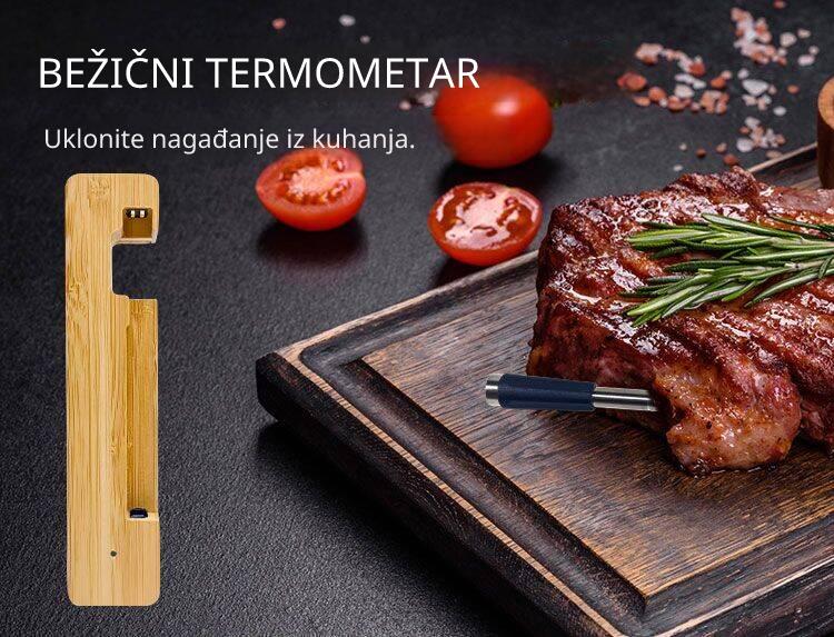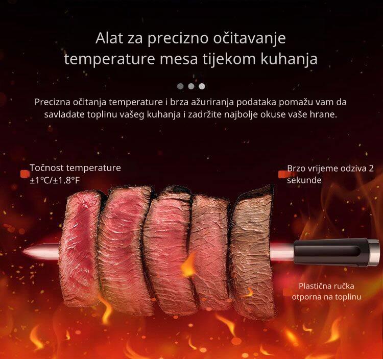 Sonda s 2 ugrađena senzora za istovremeno praćenje unutarnje temperature mesa i ambijentalne/vanjske temperature (temperatura pećnice ili kamada).