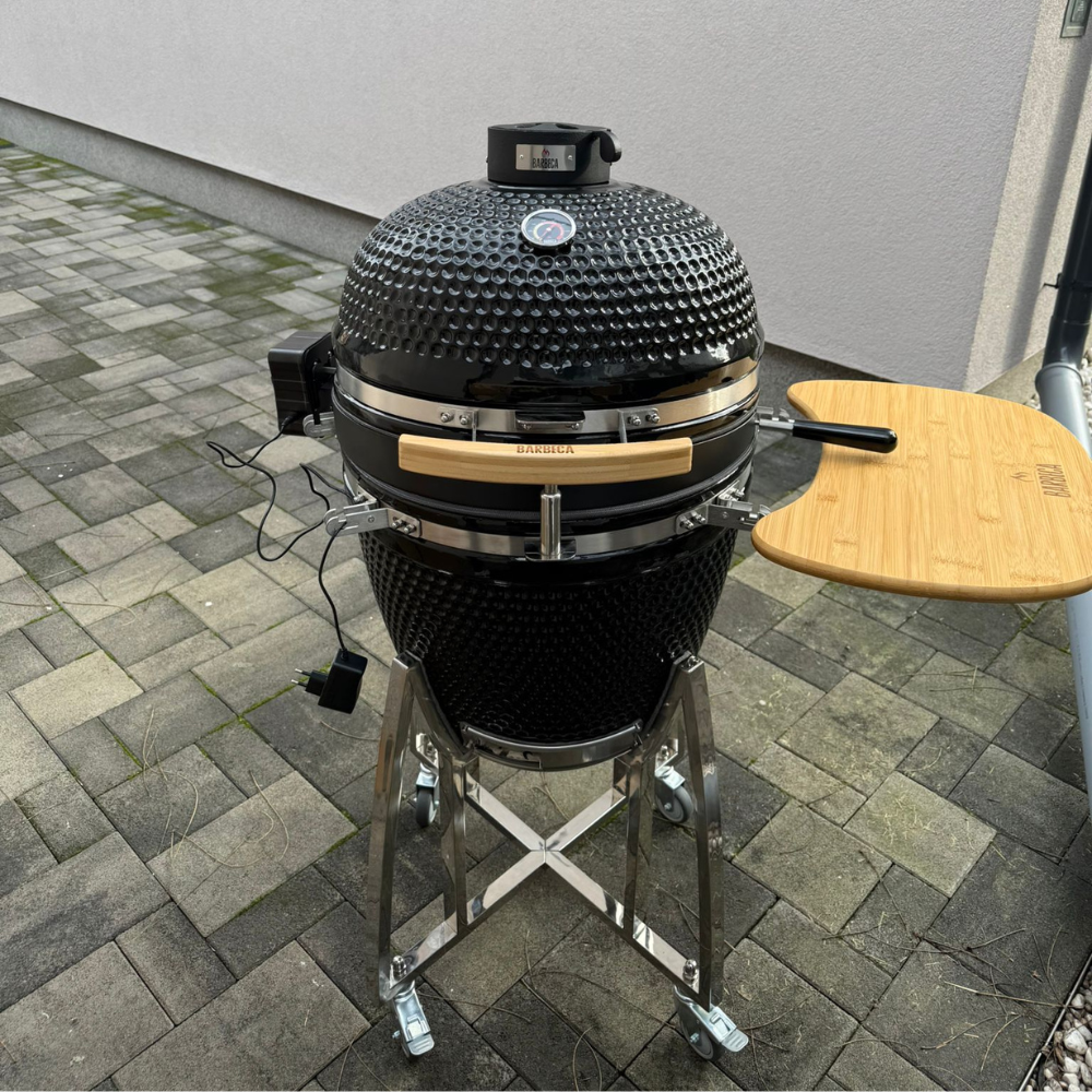 Električni ražanj se postavi na kamado, na njega se namjesti komad mesa za pečenje, ukopča se u struju te se zatvori poklopac. Lako se stavlja i uklanja s roštilja tako da vam za pripremu treba samo nekoliko minuta.
