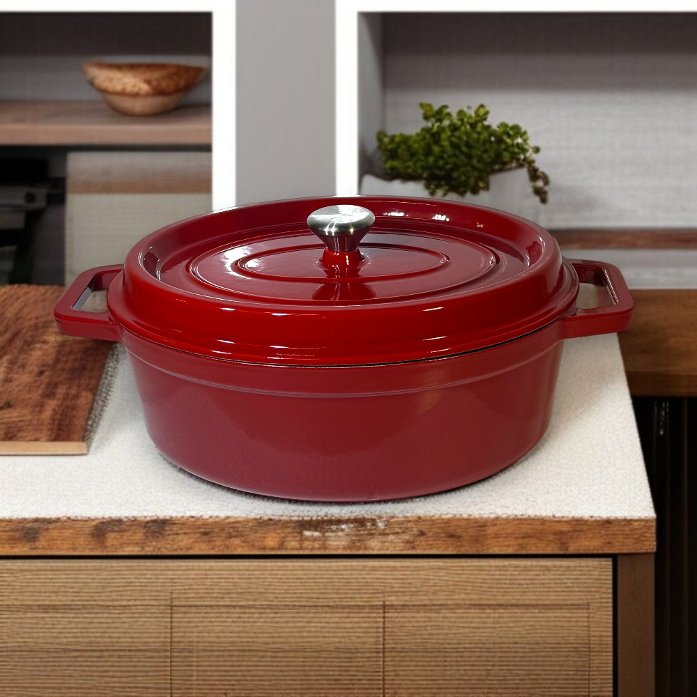 Početna Oprema i gastro Posuđe i ostalo Emajlirani lonac ovalni od lijevanog željeza, 6L