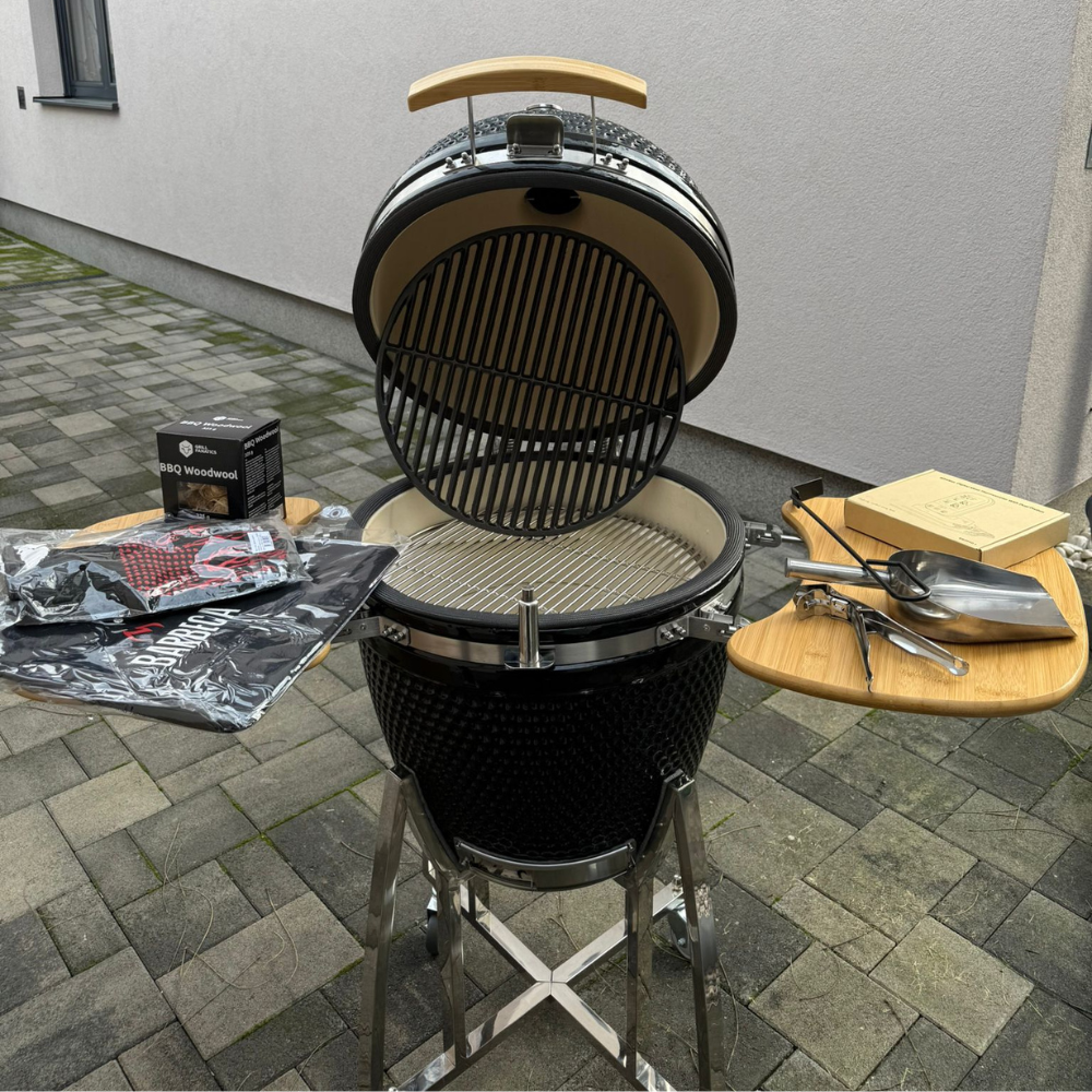 Kamado 21″ je svojom veličinom idealan za obiteljsko okupljanje ili zabavu za 8 do 10 osoba. Na njemu bez napora možete pripremiti nekoliko raznovrsnih obroka odjednom. Ispecite kolače ili pizzu, sporo pecite svinjska rebra ili pripremite sočan odrezak. Ne zaboravite na povrće, na roštilju je najukusnije i najzdravije. Robusna, premium kolica od inoxa čine ga praktičnim i sigurnim za pomicanje kroz vaše dvorište. Kamado također ima i premium brtvu od stakloplastike.