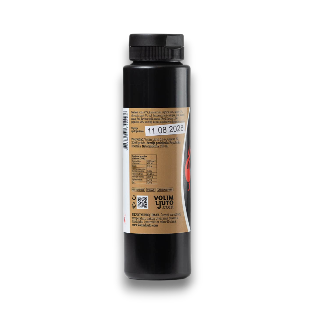Vrabasco BBQ Original je nakon toliko godina u Volim Ljuto ponudi postao i ostao voljeni klasik. Kako bi ponudili neku samo blago pikantnu opciju, osmislili su ovaj umak za roštilj u kojem mogu uživati svi, a ljutinu će osjetiti samo oni najosjetljiviji. Rajčica, fermentirani češnjak i 4 vrste papra daju mu posebnu dubinu okusa. Ovaj BBQ umak nije pretjerano sladak kakvi znaju biti drugi BBQ umaci. Ako još niste počeli koristiti umake za roštilj, svakako počnite s ovim i nakon njega nećete tražiti dalje.